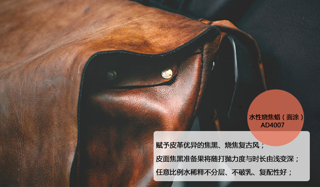 产品特性:赋予皮革优异的焦黑、烧焦复古风 焦黑效果将随打抛力度与时长由浅变深 光泽自然、通透、易抛光 适用于打光、压光及通过式烫光的工序。